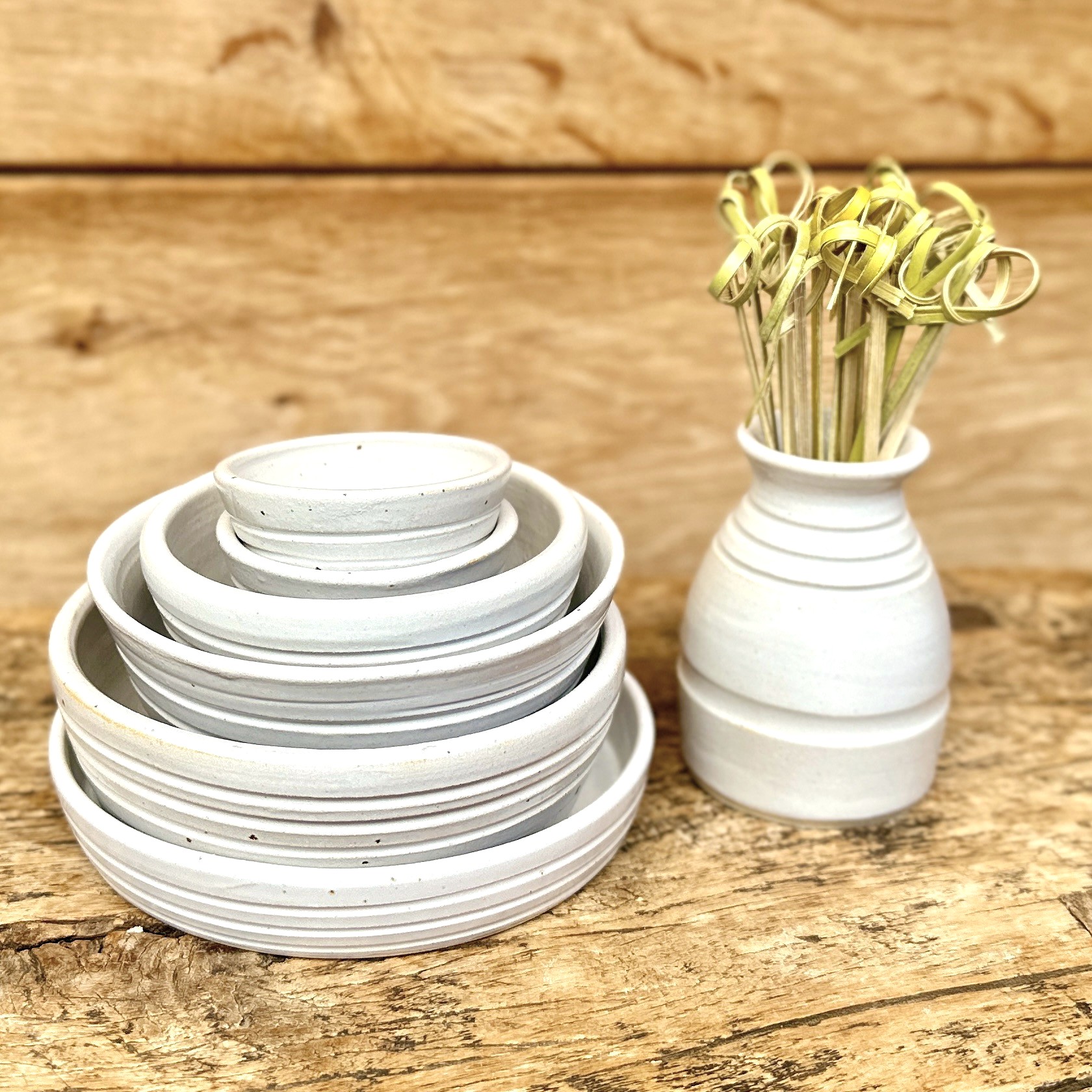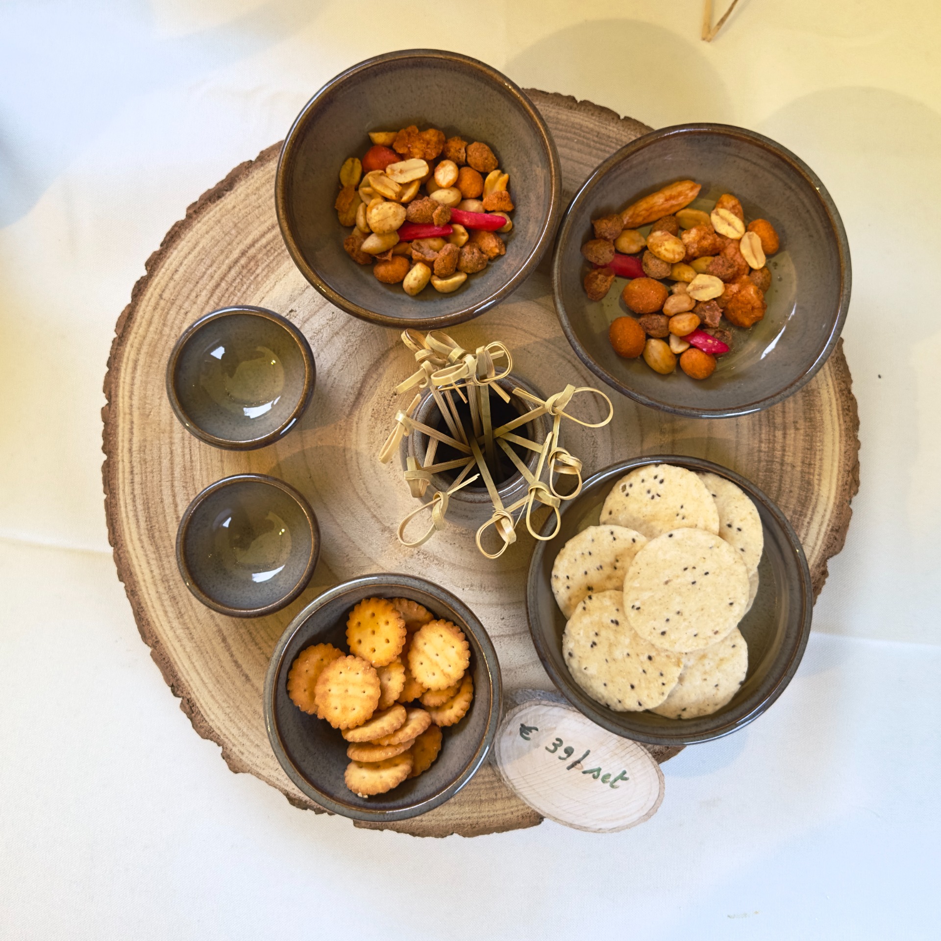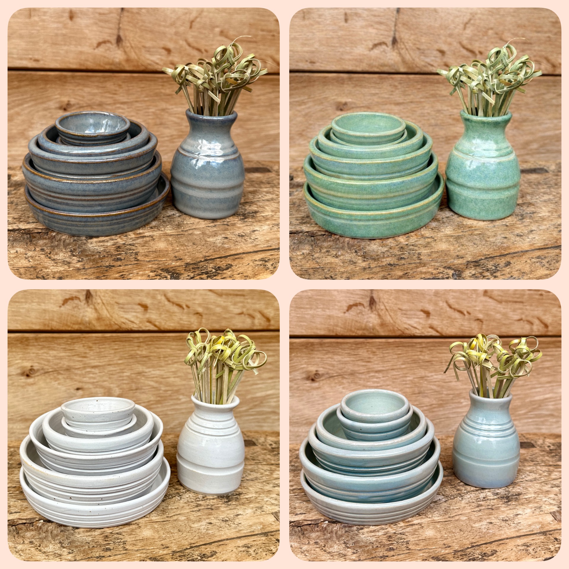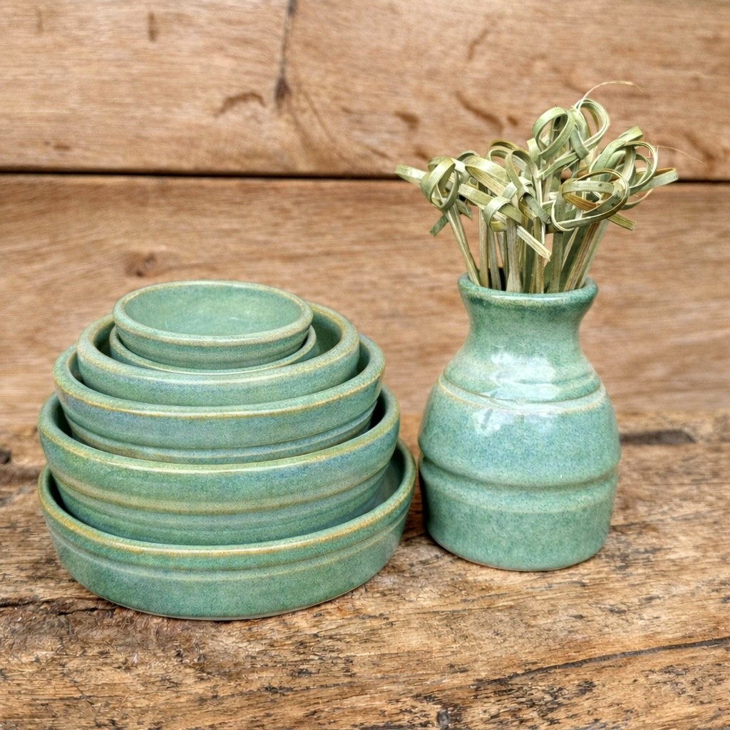 kommetje, een schaaltje, een schoteltje en 2 dip- of kruidenkommetjes.