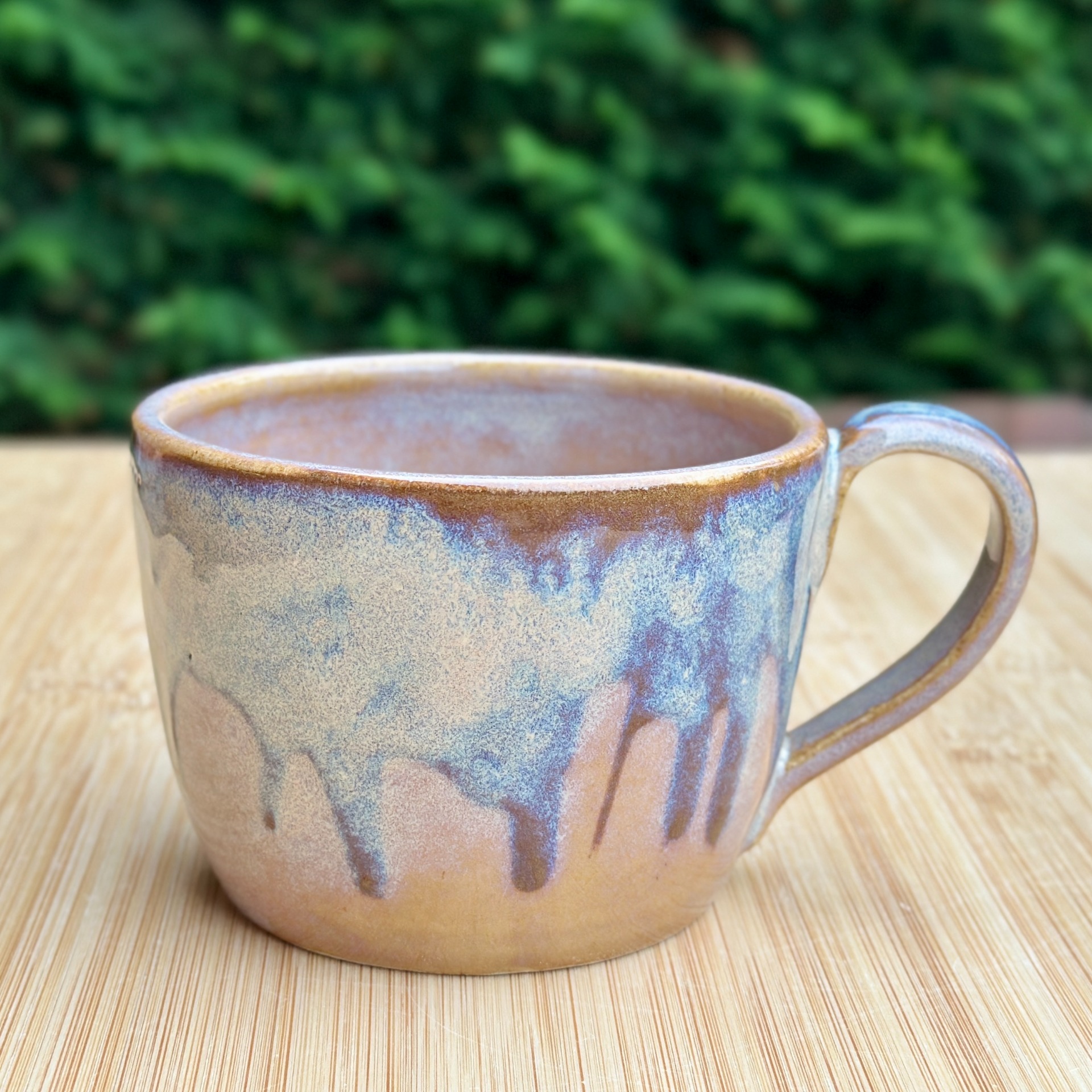 Bruin geglazuurd met wit -blauwe effecten in het speels druipeffect.