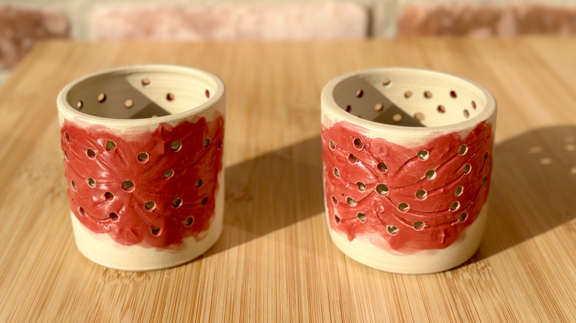 ik twee versies aanbieden: de eerste is helemaal rood geglazuurd en fijn gedecoreerd