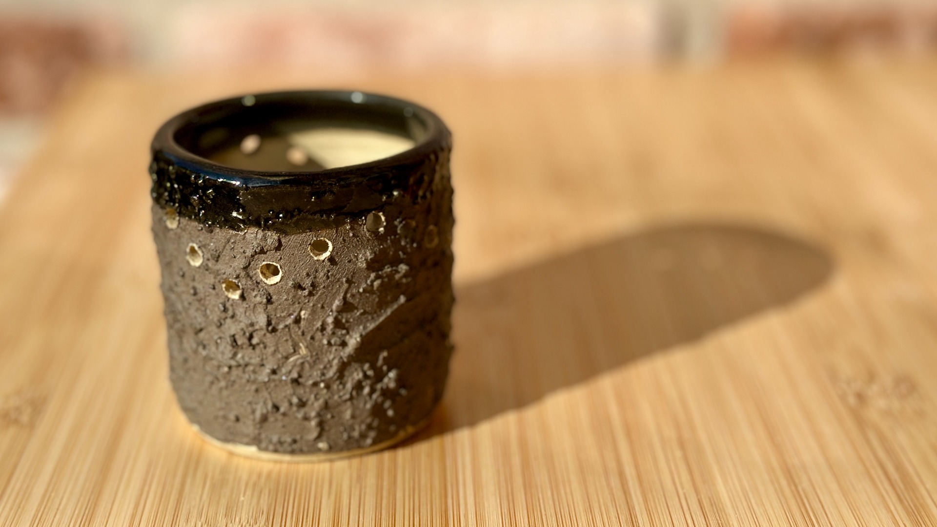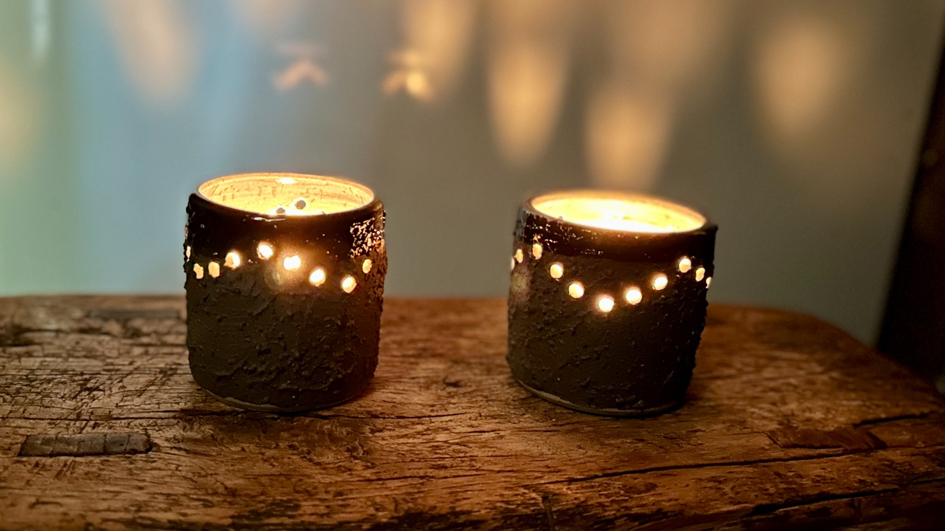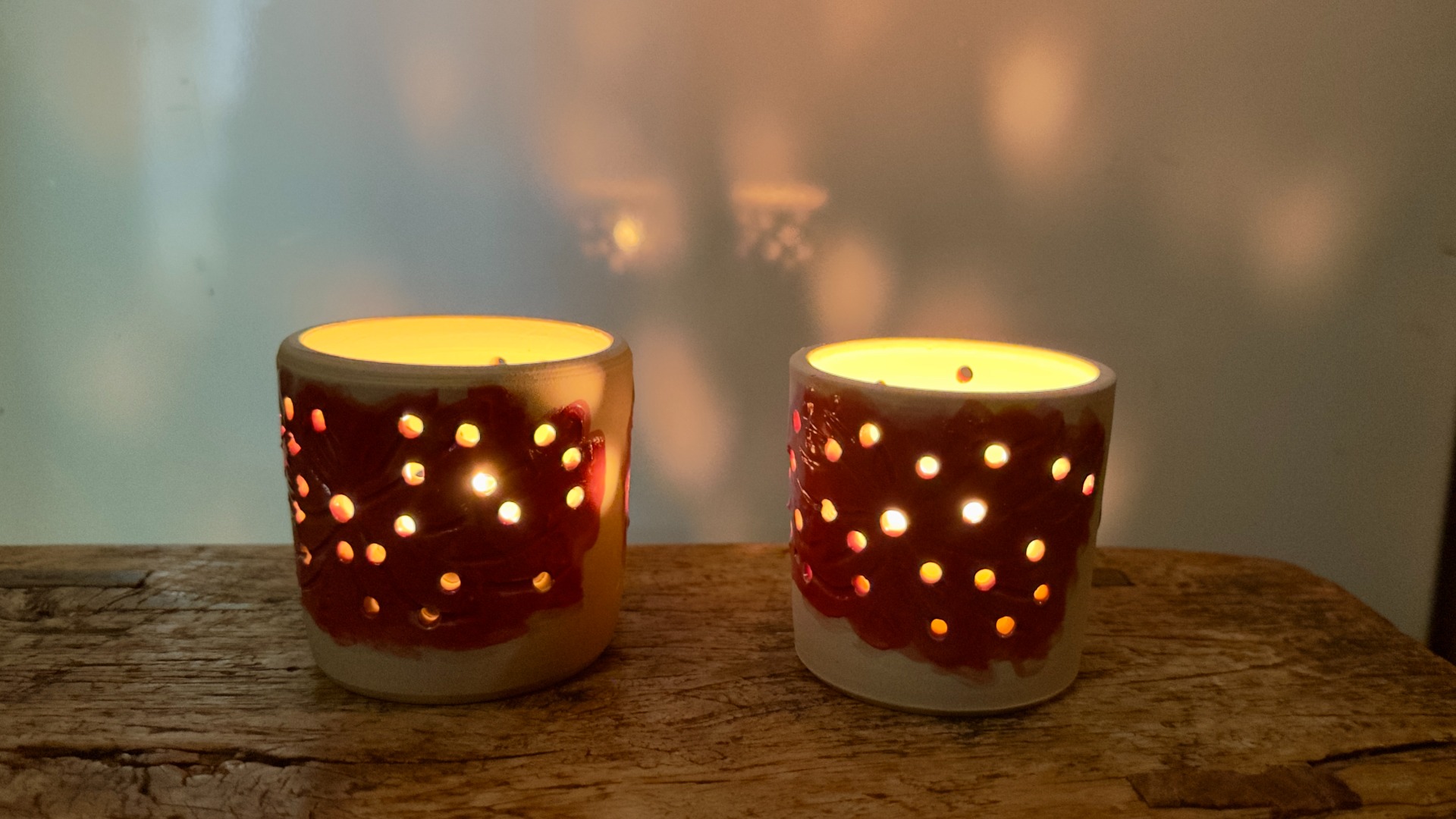 en door de gaatjes verspreidt zich het kaarslicht.